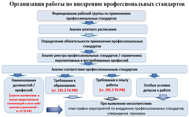 Минтрудом России разработана и предложена к реализации стандартная схема перехода на профессиональные стандарты. Согласно нее,