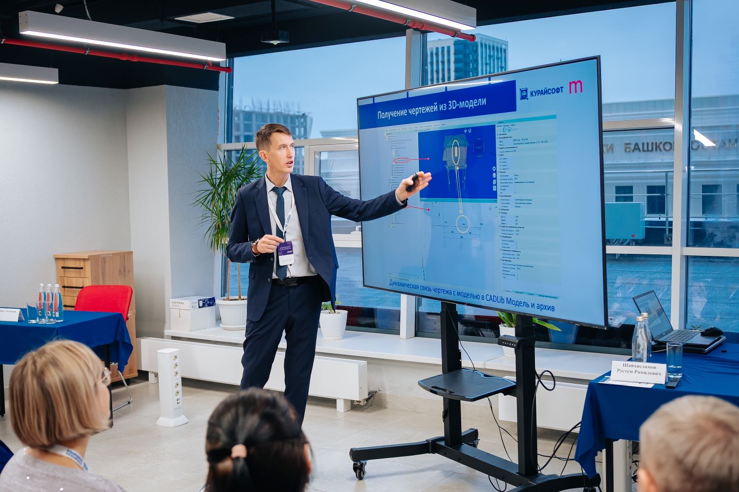 Далее эстафету перехватило ООО «КУРАЙСОФТ», подняв планку до уровня сквозного управления жизненным циклом объекта (ЖЦО). В презентации было подробно раскрыто, как связка продуктов «ModelStudio CS» и «CADLib Модель и Архив» создает единое информационное пространство для всех этапов — от идеи и проектирования до строительства, ввода в эксплуатацию и последующего обслуживания. Особый интерес вызвала возможность работы не с разрозненными документами, а с привязанными к элементам цифровой модели данными, что кардинально меняет подход к эксплуатации и ремонту.